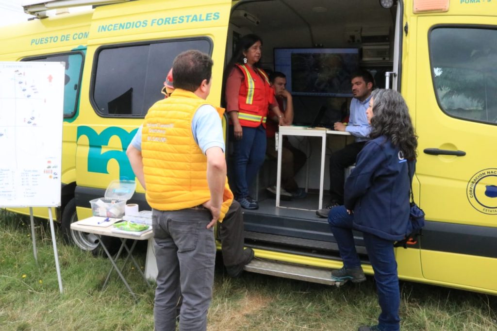 Según explicó la directora de Conaf, María teresa Huentequeo, hasta ahora están trabajando en la zona nueve brigadas de Conaf, más tres aviones y un helicóptero. Hasta ayer estuvo operando un avión hércules que podría volver en las próximas horas, dependiendo de la evolución de la emergencia.