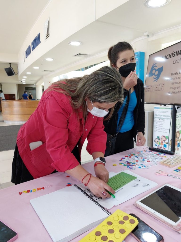 “Esta actividad busca contribuir a una mirada más amplia de la necesidad de la accesibilidad en la información y a cómo poder contribuir como comunidad institucional a una atención mucho más personalizada dirigida a personas con discapacidad visual, sean personas ciegas o con baja visión. Yo creo que la forma didáctica de llevar a cabo el stand contribuyó y ayudó a que hubiese mucho interés, muchas formas de disfrutar el aprendizaje del braille y, sobre todo, querer aprenderlo más allá de este momento. Ahora hay personas que están preguntando cómo lo aprendo y creo que esa es la mayor evidencia de concienciación de las personas. No verlo como algo entretenido, sino que como necesario” expresó.