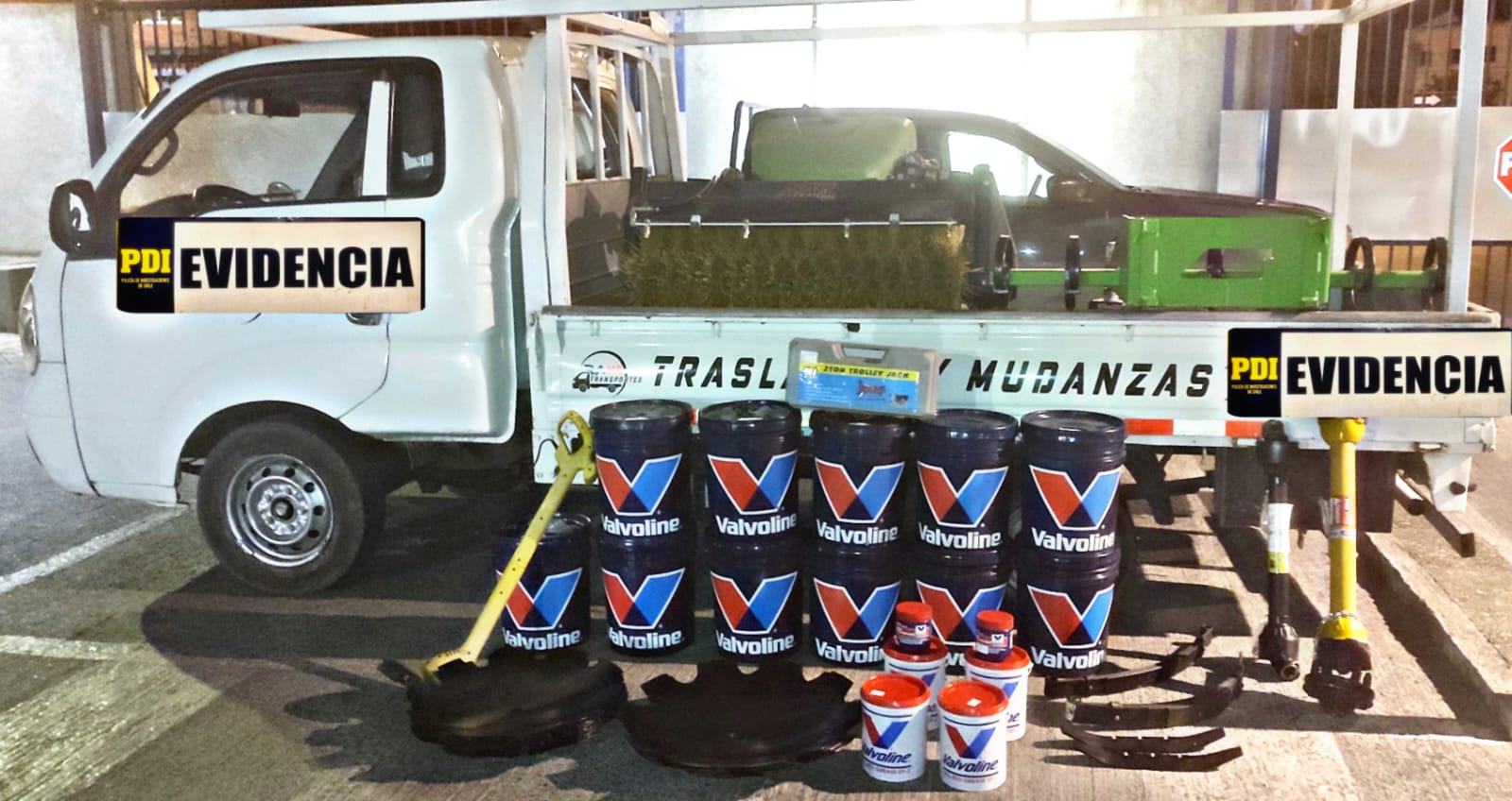 En tanto, las especies sustraídas fueron recuperadas en su totalidad, entre las cuales se encuentran: 11 tarros de aceite Universal Tractor Fluid Sae, 10W-30, de 19 litros; 12 discos para rastra de 22», cinco discos para rastra de 24», una gata hidráulica, un cultivador frontal, marca Avant; un cazo con cepillo, marca Avant, modelo 1100, entre otros implementos agrícolas, todos avaluados en más de $16 millones de pesos.