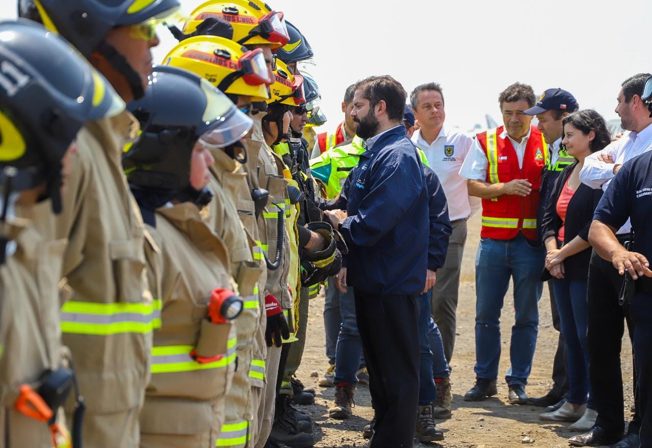 Otro aspecto del combate al fuego que relevó el Presidente Gabriel Boric es el “tremendo e importante trabajo que está haciendo CONAF, los brigadistas y los voluntarios y voluntarias de Bomberos de Chile, resaltando también la llegada de brigadistas desde el exterior. “A esta importante ayuda se suman los 150 brigadistas mexicanos que arribaron hoy en la mañana a este mismo aeropuerto (…) a estos se agregan los 50 brigadistas y un avión 330 despuesto por España, y vehículos y brigadistas, además, de un helicóptero Chinook, enviados desde Argentina”, dijo.