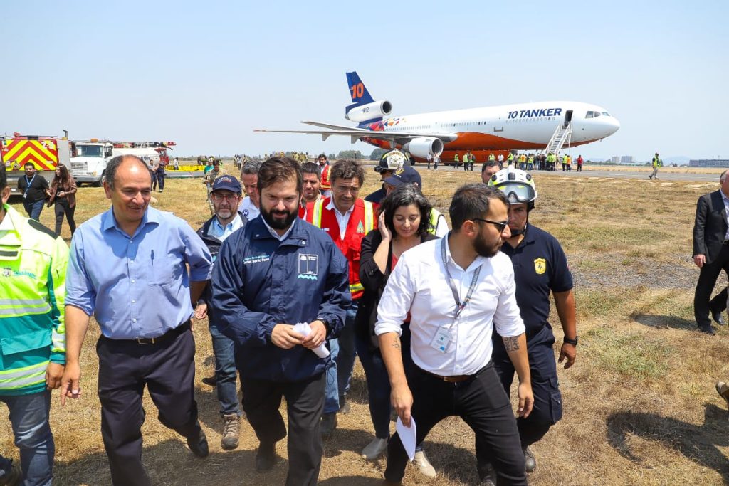 Presidente Boric recibe DC 10-Air Tanker que apoyará combate de incendios que afectan al país