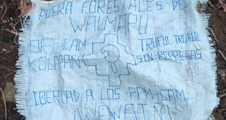 En el lugar se encontró un lienzo con las frases «fuera forestales del Walmapu» y «libertad a los presos políticos mapuches».