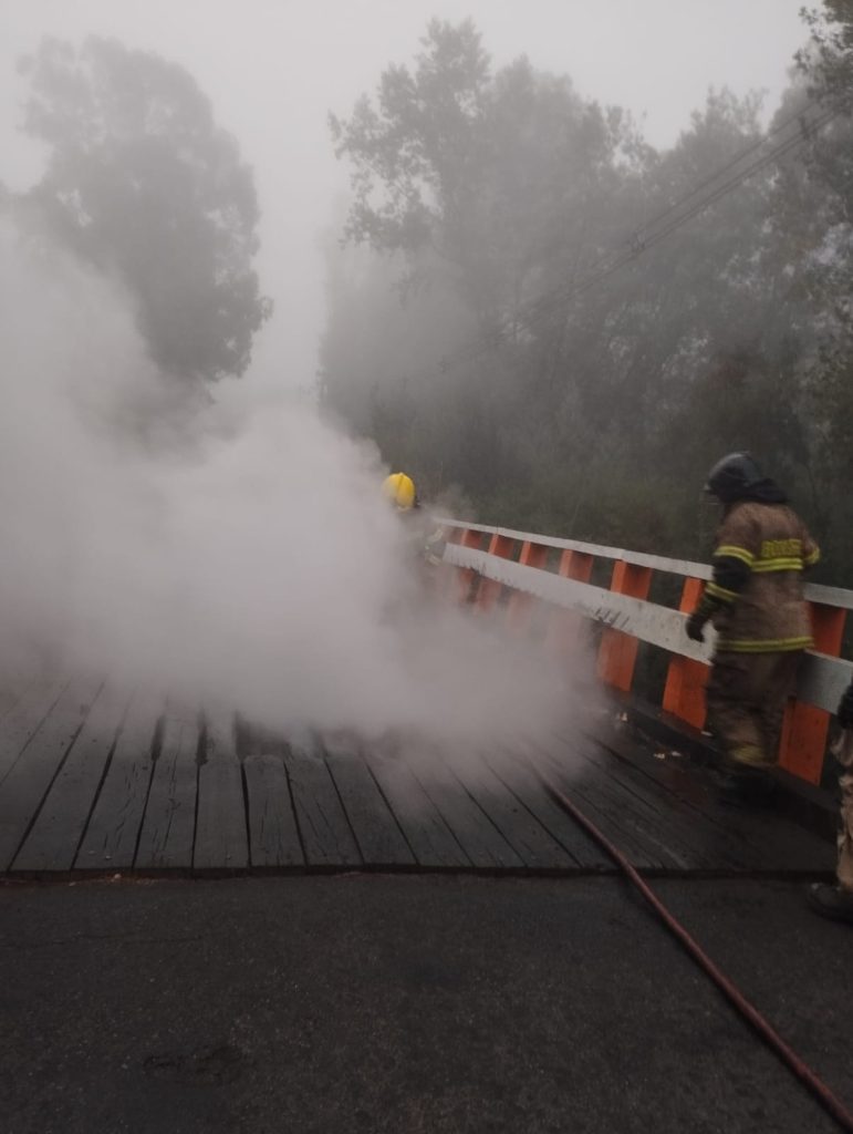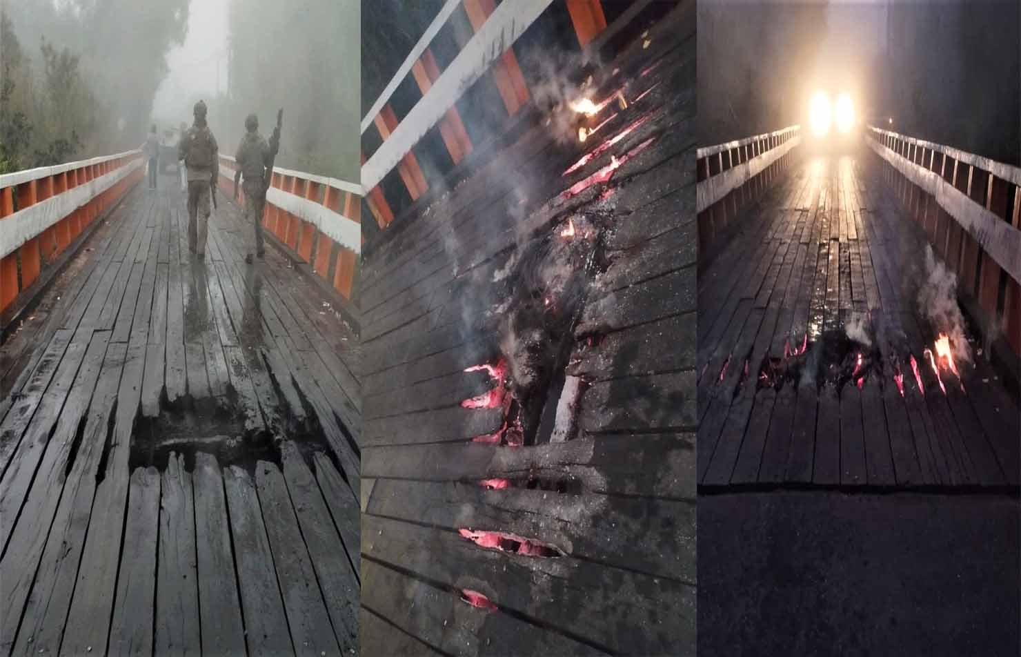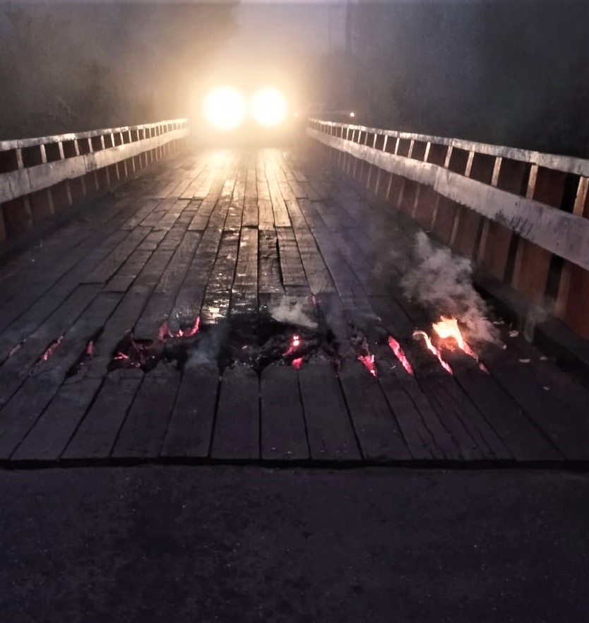 En el lugar, desconocidos procedieron a prender fuego al puente, el que quedó visiblemente dañado.
