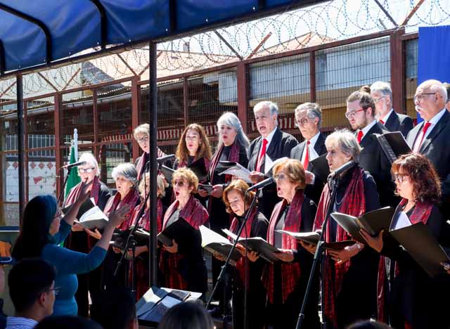 En el Centro de Detención Preventiva de Villarrica, la población penal pudo disfrutar de un Concierto de Extensión con la participación del Coro Singkreis Arturo Junge dirigido por Karin Friedli y el Coro E’Boca del director Ricardo Curihuinca, ambos coros parte de la Gala del Festival Primaveras Corales Villarrica 2023 a realizarse en dicha ciudad.