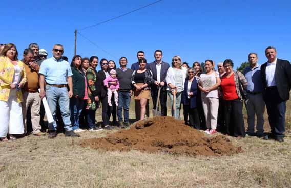 El gobernador Rivas junto a la alcaldesa, Jacqueline Romero, y los socios de la Cooperativa Newen Berries dieron el vamos a las obras, tras colocar la primera piedra de lo que será esta importante infraestructura que les permitirá optimizar la producción de alimentos y otorgar un valor agregado a sus productos.