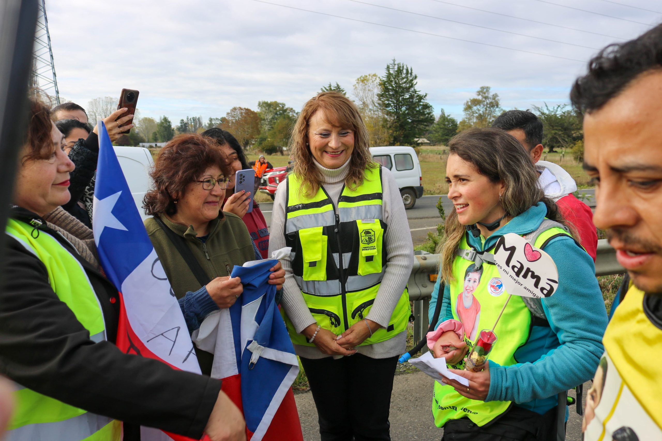 La Alcaldesa Jacqueline Romero entregó su apoyo y acompañó, por más de tres kilómetros, a Camila Gómez, madre de Tomás, quien hace 13 días inició una caminata desde Chiloé a Santiago, con el objetivo de lograr los 3.500 millones de pesos que cuesta el medicamento que necesita su hijo. Además de visibilizar el problema de quienes viven y conviven con la Distrofia Muscular de Duchenne en nuestro país.
