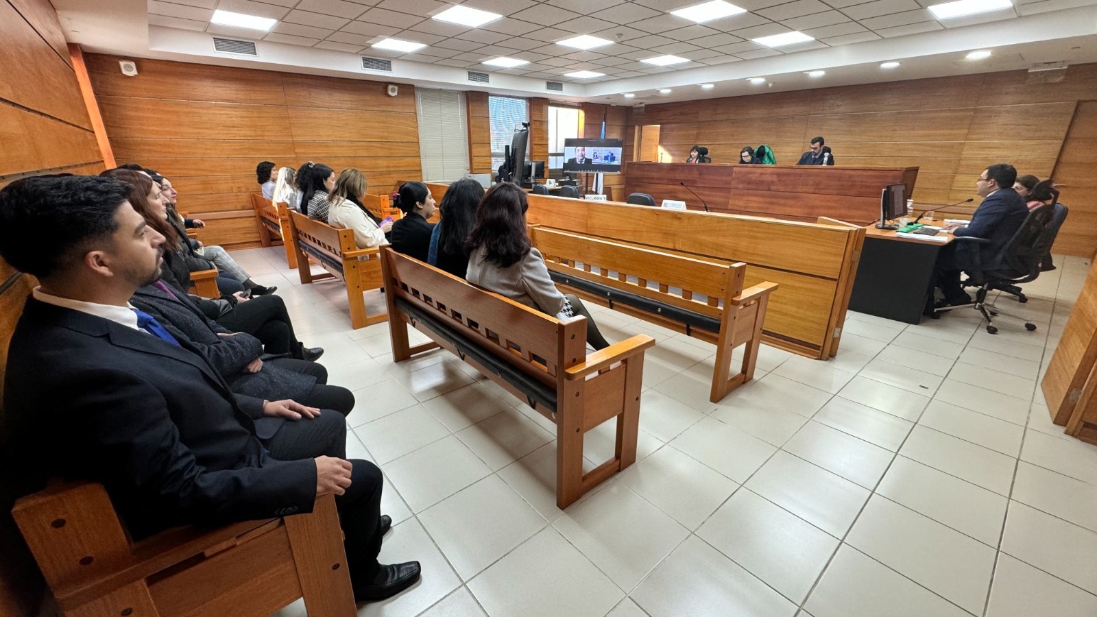 El grupo de estudiantes presenció alegatos en la Primera Sala de la Corte de Apelaciones, la que fue integrada por la presidenta del tribunal de alzada, Cecilia Aravena; la ministra Georgina Gutiérrez y el abogado integrante Cristián Carvajal.