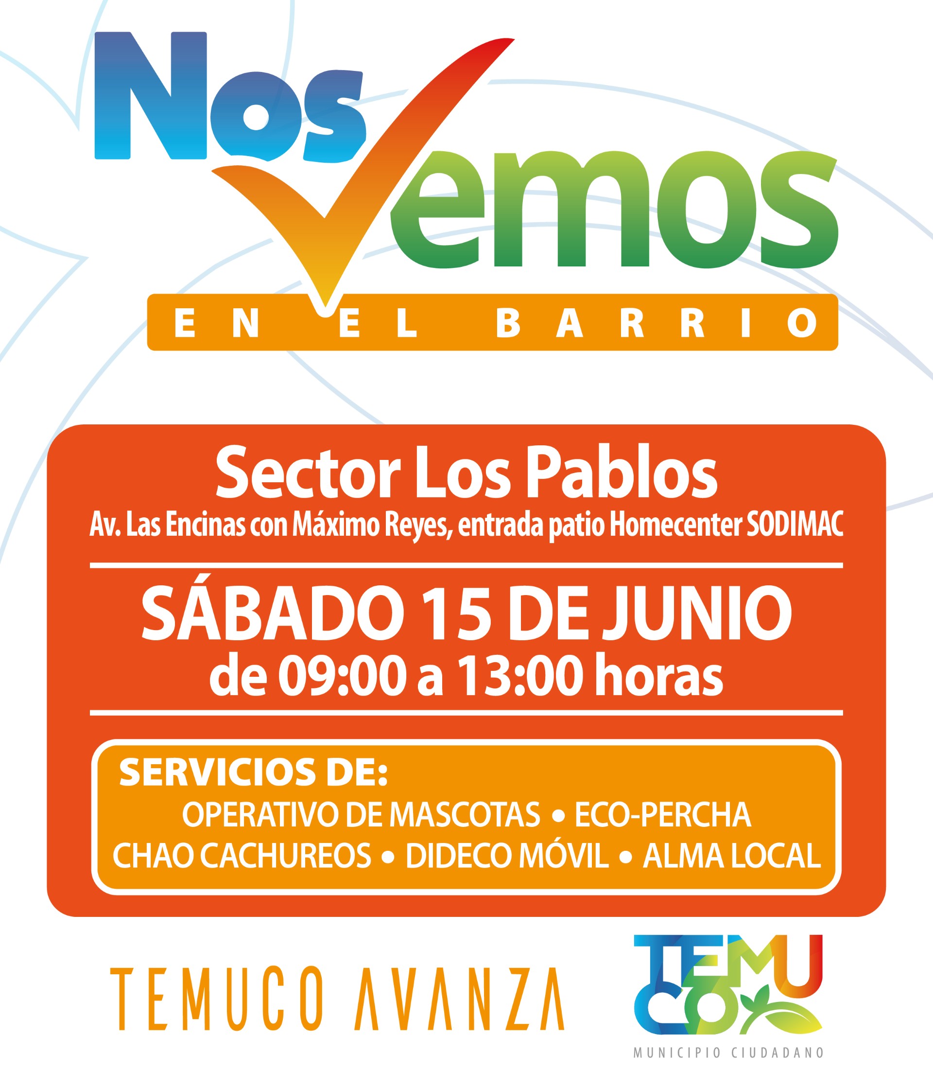 A raíz del éxito de los operativos en terreno como Chao Cachureos o Mascotas en tu barrio, la municipalidad de Temuco comenzará a implementar, a partir de este fin de semana, el programa “Nos Vemos en el barrio”, iniciativa que concentrará diferentes acciones en los sectores de la comuna, acercando los servicios municipales y ofreciendo un espacio de interacción entre los vecinos.