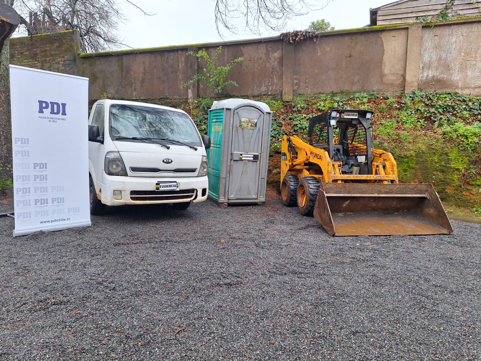 En su domicilio se recuperó una camioneta marca Kia, modelo Frontier, que registraba encargo por el delito de robo de vehículo motorizado, desde la 25ª Comisaría de Maipú, una máquina industrial marca Hyundai, que mantenía encargo por el delito de robo en lugar no habitado, desde el sector Nonguén en Concepción, además de un baño químico que también había sido sustraído. El avalúo total de las especies recuperadas es de $30 millones 700 mil pesos.