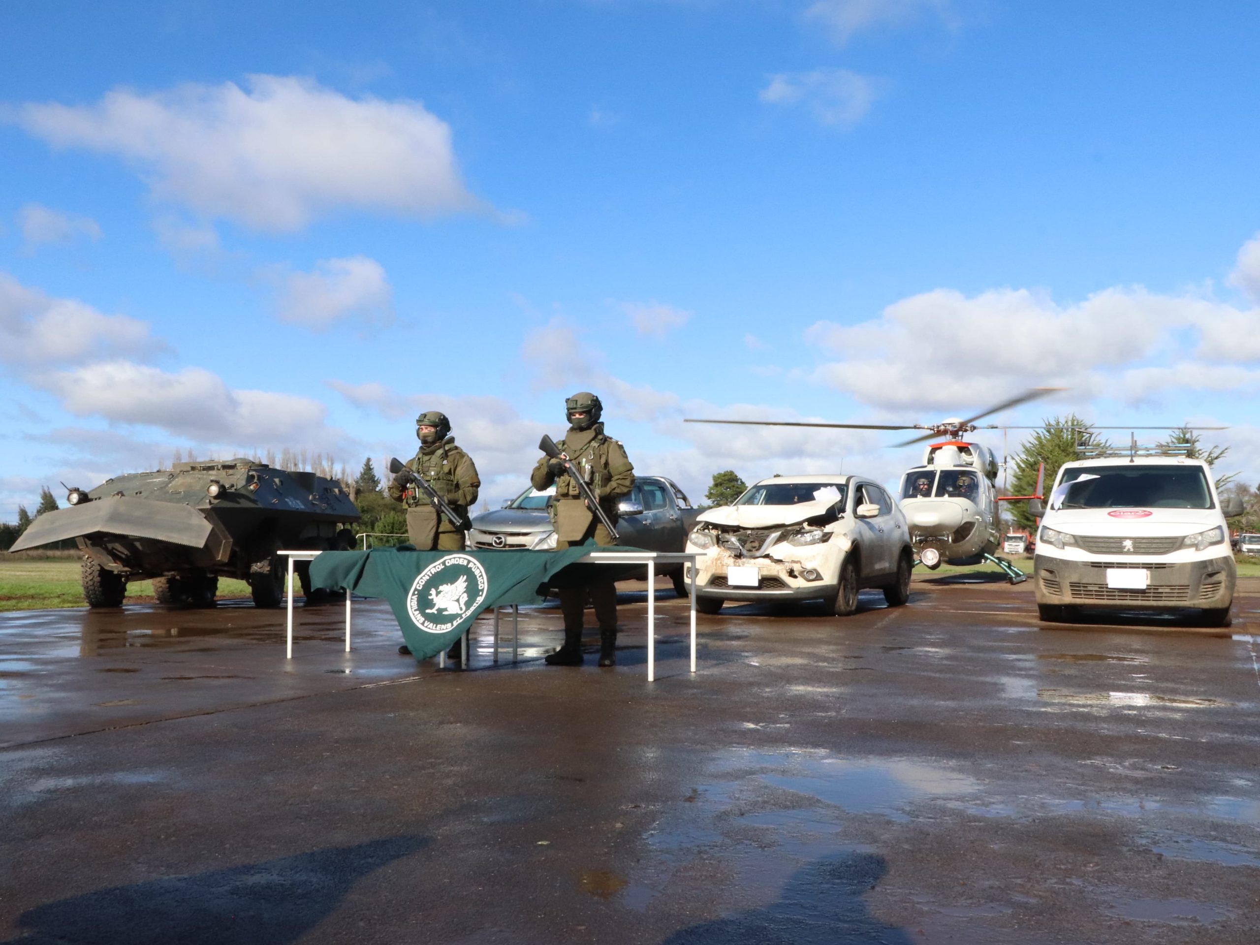 El General Cristian Mansilla, Jefe de la Zona Araucanía COP, confirmó sobre este procedimiento, que tras un seguimiento “Carabineros detectan estos dos vehículos y fueron atacados con armas de fuego, les dispararon en varias oportunidades, incluso uno de nuestros vehículos blindados resultó con daños por impactos balísticos; Carabineros utilizó su armamento de servicio para repeler el ataque y estos sujetos se dieron a la fuga en sectores boscosos y muy complejos de ingresar, pero en esta oportunidad también se logró la recuperación de los dos vehículos robados recientemente”.