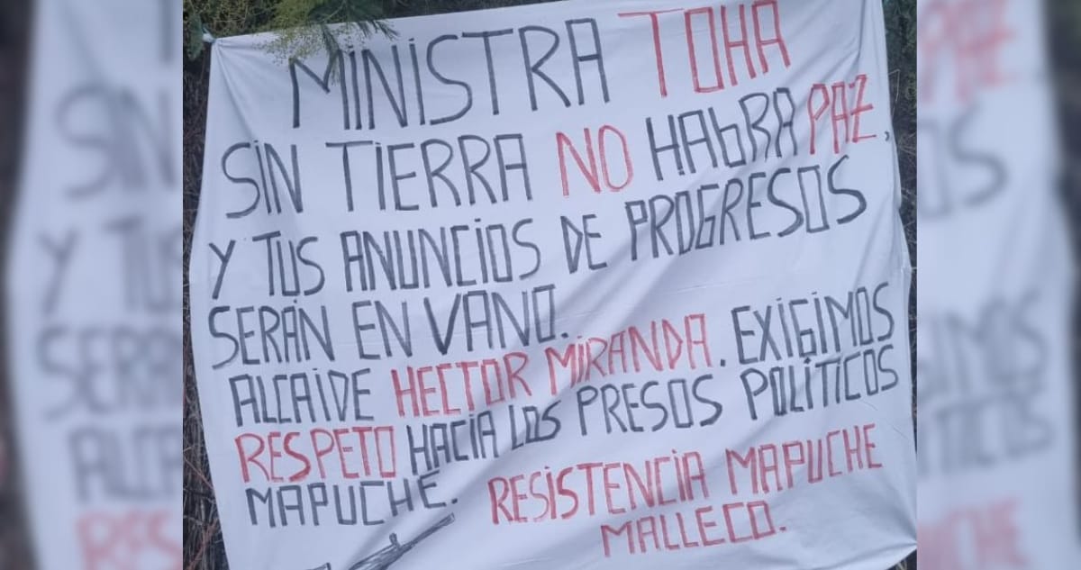 “Ministra Tohá, sin tierra no habrá paz y tus anuncios de progreso serán en vano“, se detalla en el escrito, firmado por la Resistencia Mapuche Malleco.