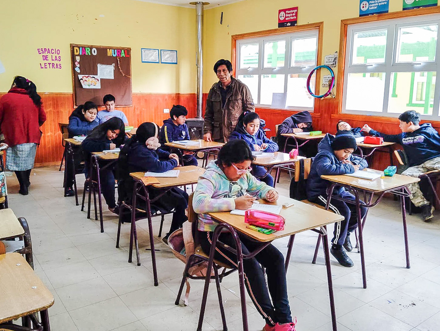 En la escuela Vega Larga de Lautaro, Joel Maripil enseña a los niños de 5° y 6° año básico los conocimientos propios de la música mapuche, la que ha dedicado su vida a difundir mediante el canto.