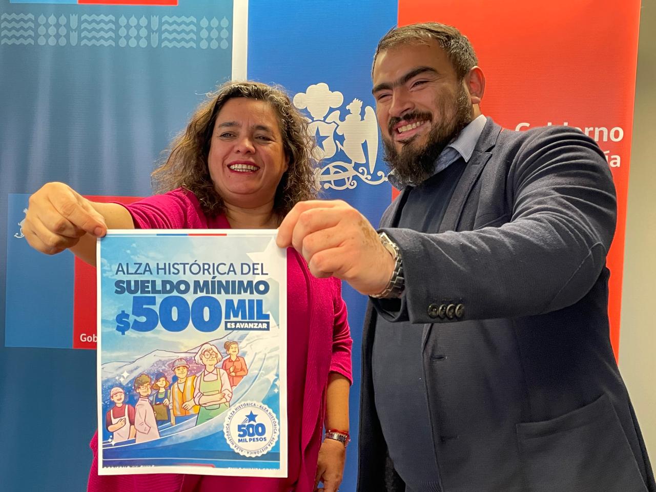 Respecto al aumento del sueldo mínimo, la seremi de Gobierno, Verónica López-Videla, afirmó que “estamos cumpliendo un compromiso importante del programa de gobierno del Presidente Gabriel Boric, que es llegar a un sueldo mínimo de al menos 500 mil pesos, y esto lo cumplimos de manera anticipada, producto de un acuerdo y un diálogo histórico entre el gobierno, los trabajadores y los empleadores. Al cumplir este compromiso, estamos trabajando para brindarles condiciones más dignas a las trabajadoras y trabajadores de nuestro país que están en esta escala de sueldo”.