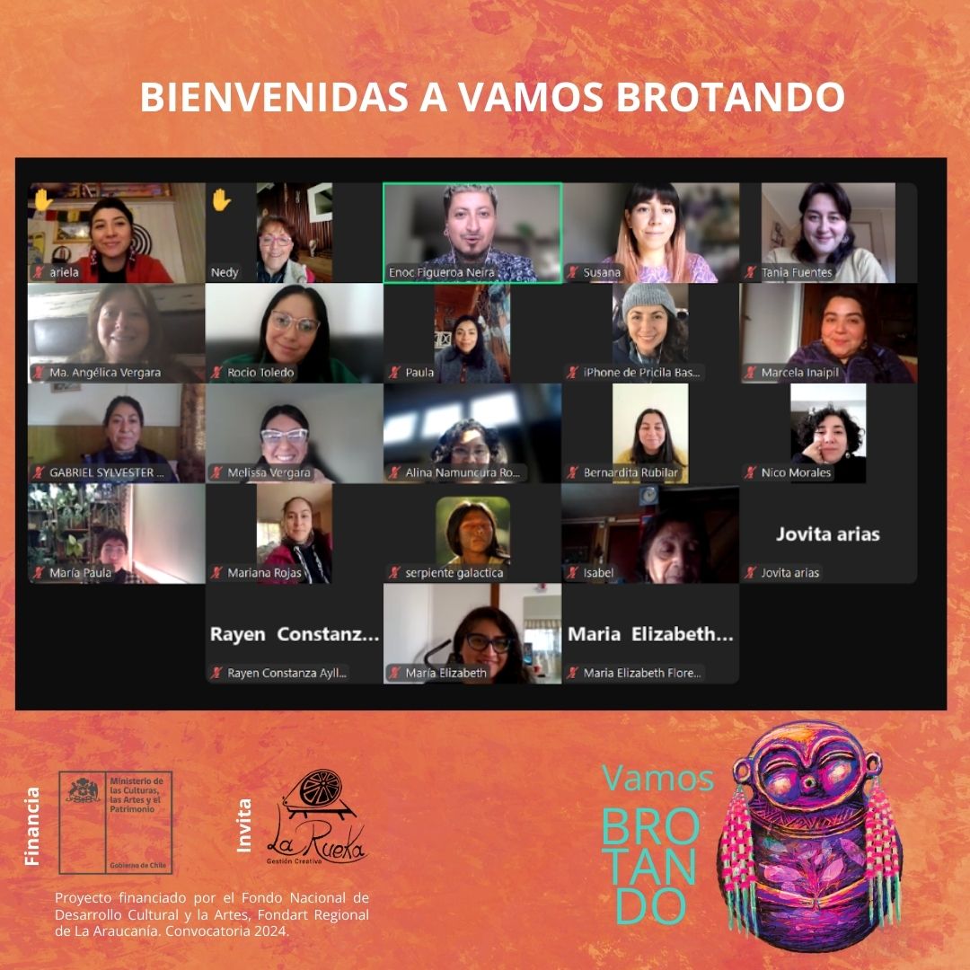 Vamos Brotando desarrollará un total de cuatro módulos virtuales los que corresponden a Gestión, diseño y evaluación de proyectos, Comunicación y difusión, Internacionalización, Experiencias y prácticas innovadoras y finalmente de manera presencial el espacio Contribuciones prácticas para el quehacer en artesanía. Este último propicia el encuentro cara a cara tras cuatro meses de encuentros en la virtualidad además de culminar el recorrido cursado por las participantes.