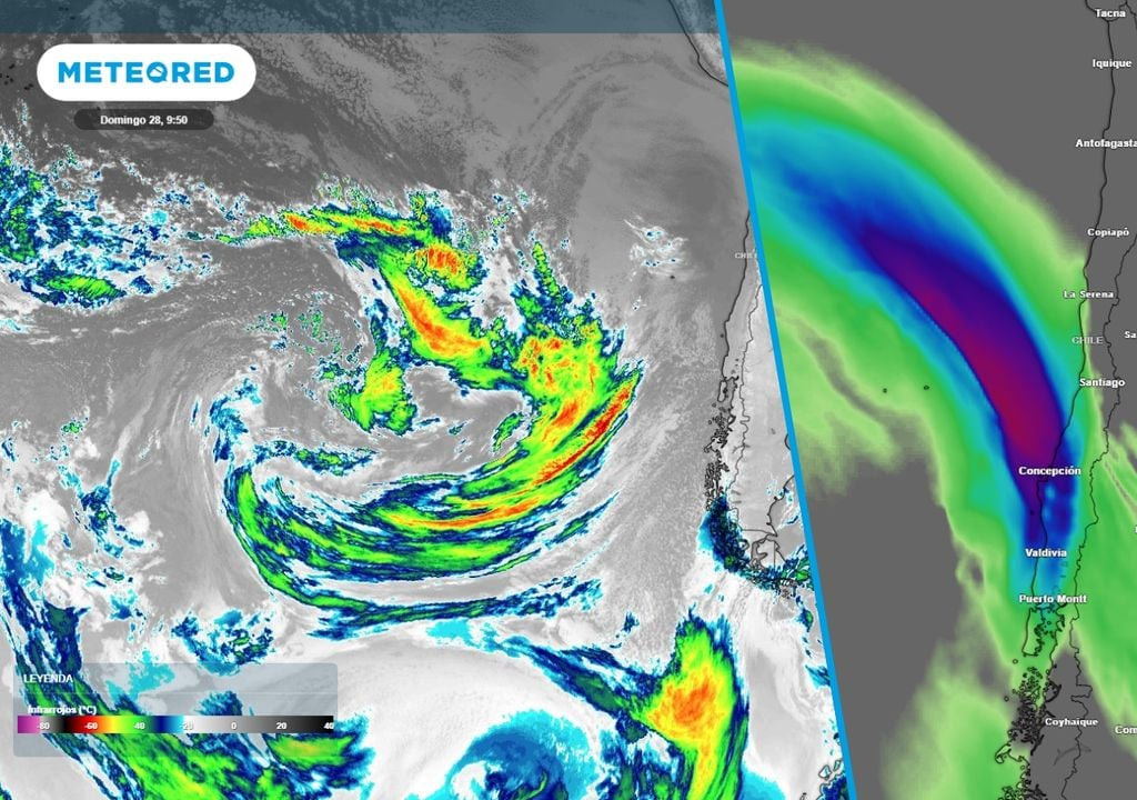 La gran área ciclónica comienza a moverse hacia Chile. Los modelos de pronóstico apuntan a las regiones de la zona sur como las más afectadas con este intenso río atmosférico y sistema frontal que dará el inicio de agosto.