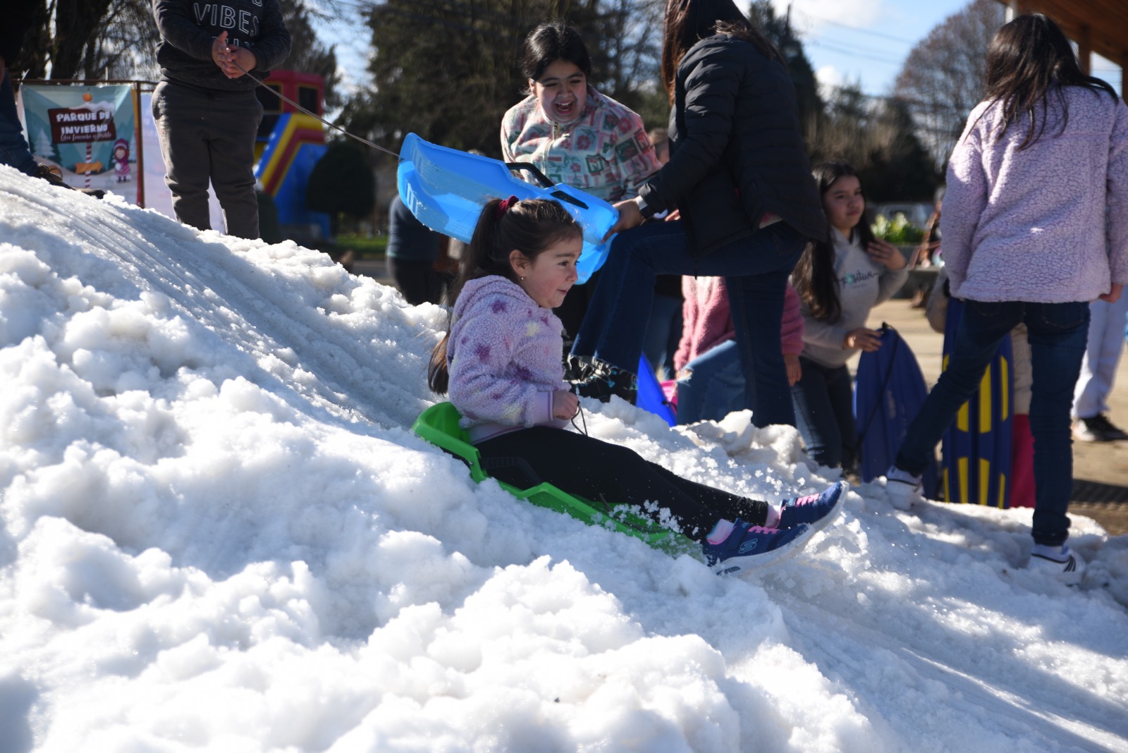 Caras de alegría y emoción en sus ojitos al ver por primera vez nieve, se vivieron en la plaza de armas, que además contó con un espacio exclusivo para personas en situación de discapacidad y condiciones especiales, con el fin que igual sean parte de este mega evento del día de la niñez gracias al equipo de Discapacidad, Oficina Local de la Niñez, Oficina Municipal de Niñez y Juventud, Oficina de Deportes, SECPLAN, DIDECO, Educación, Salud y otros programas y oficinas municipales.