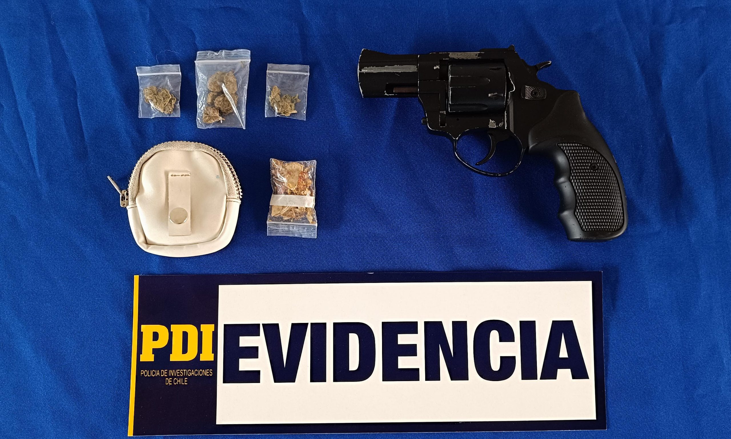 Asimismo, al momento de registrar el inmueble y sus pertenencias fueron encontrados envoltorios de cannabis sativa y de hongos alucinógenos, además de un arma de fuego tipo revolver, sin marca de fábrica ni numeración visible – ambos elementos borrados- el cual será derivado al Laboratorio de Criminalística para la realización de peritajes destinados a establecer su condición mecánica y verificar su capacidad funcional para efectuar disparos.