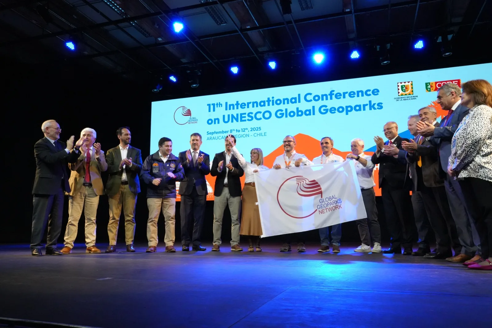 En el evento desarrollado en el Aula Magna de la Universidad Católica de Temuco se anunció que el Geoparque Oeste de Portugal será sede de la 12ª Conferencia Internacional de Geoparques Mundiales de la UNESCO en 2027.