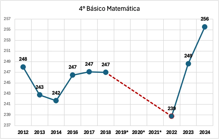 En materia de aprendizajes, los resultados del Simce muestran una recuperación contundente. En lectura y matemática, tanto en 4° básico como en 2° medio, se registraron incrementos sostenidos entre 2022 y 2024. En tres de las cuatro pruebas analizadas, la recuperación fue total, mientras que en la restante la brecha se redujo a solo dos puntos.