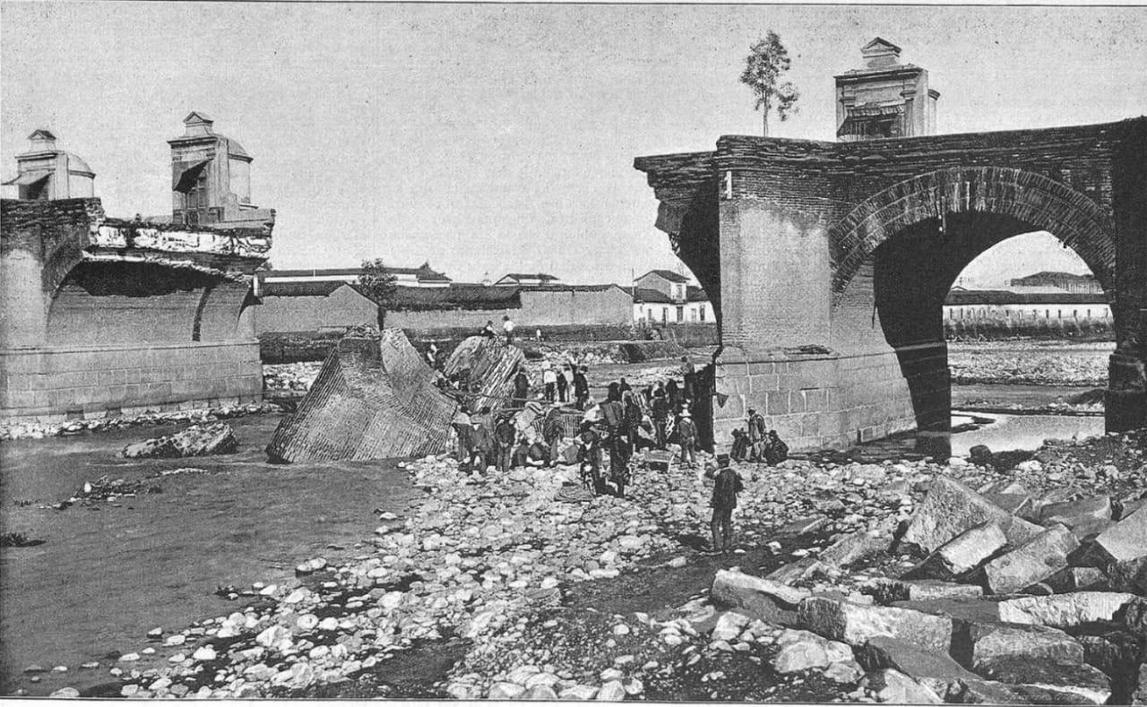 1888-Se procede a demoler el puente de cal y canto sobre el Mapocho.