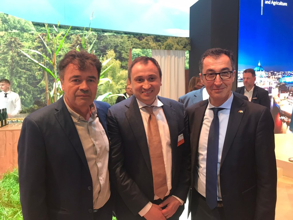 Durante la Semana Verde de Berlín y en el marco del Foro Mundial para la Alimentación y la Agricultura y la 15° Conferencia de Ministros de Agricultura de Berlín, el ministro de Agricultura, Esteban Valenzuela, se reunió con el Ministro Federal de Alimentación y Agricultura de Alemania, Cem Özdemir, y con el aplaudido ministro de Agricultura de Ucrania, Mykola Solskyi.