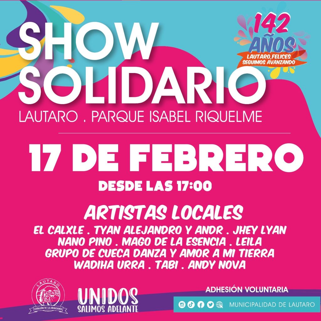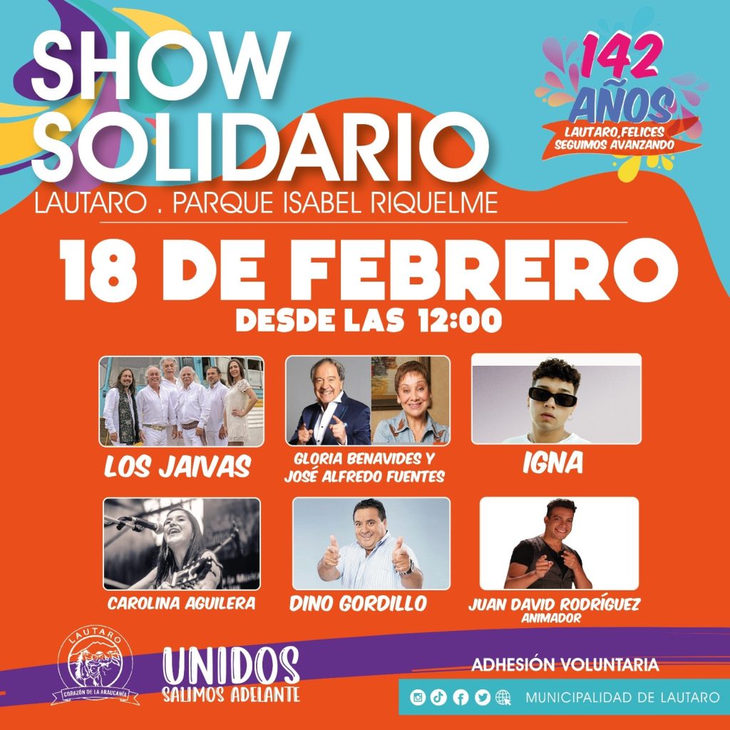 Estas jornadas contarán con presentaciones de artistas locales durante el día viernes, además de atracciones como gastronomía típica, juegos infantiles y artesanías, mientras que el día sábado se realizará un show con connotados artistas nacionales como Los Jaivas, Dino Gordillo, entre otros, para entregar un momento de disfrute a todos los asistentes en el cumpleaños Nº 142 de Lautaro, además de aportar en la recaudación de fondos.