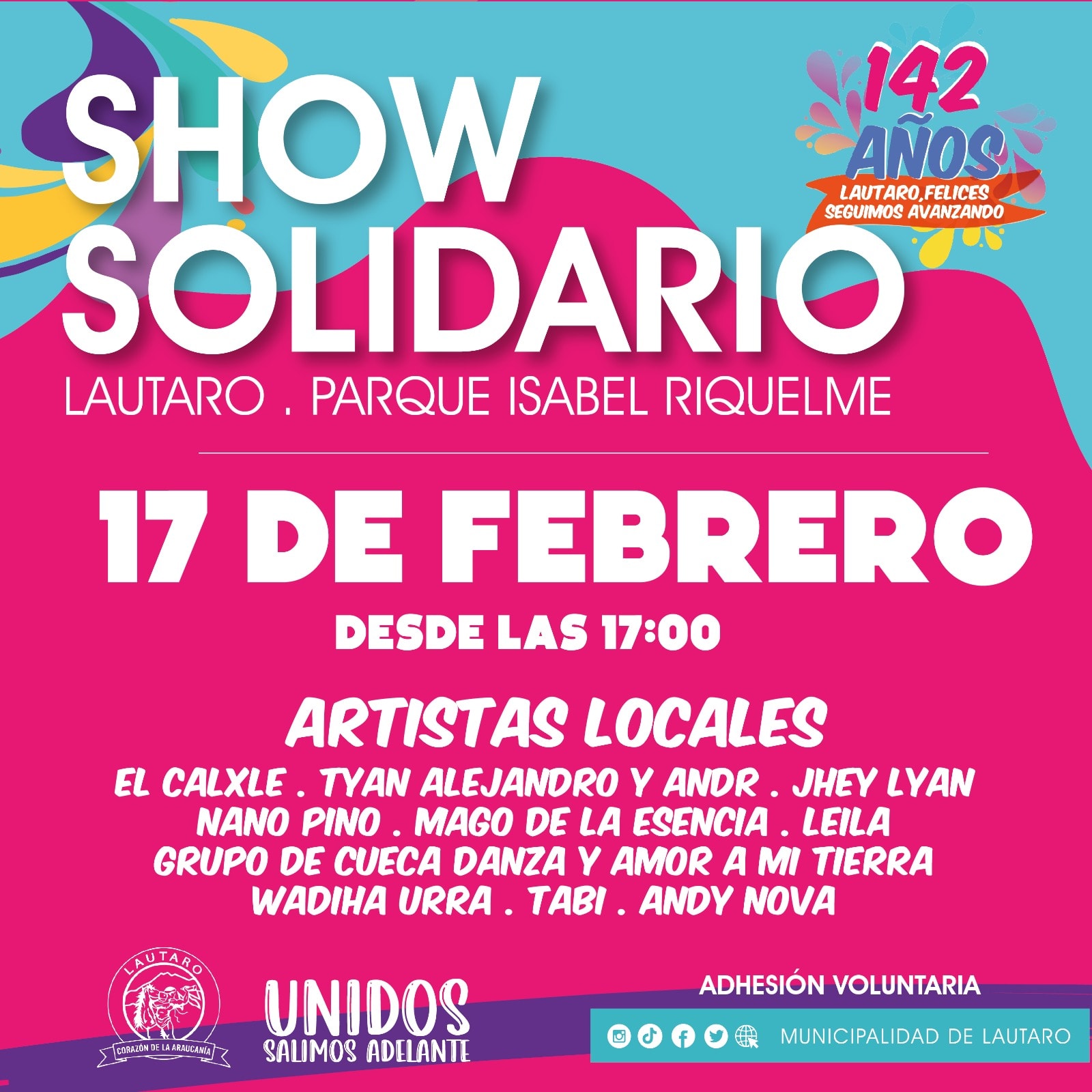 Estimados colegas, la Municipalidad de Lautaro y su alcalde, Ricardo Jaramillo Galindo, convocan a los medios de comunicación a participar de las jornadas de aniversario solidario de la comuna a realizarse el 17 y 18 de febrero en el parque Isabel Riquelme, lo que busca recaudar fondos a través de adhesiones voluntarias para ir en ayuda de las familias damnificadas por incendios.