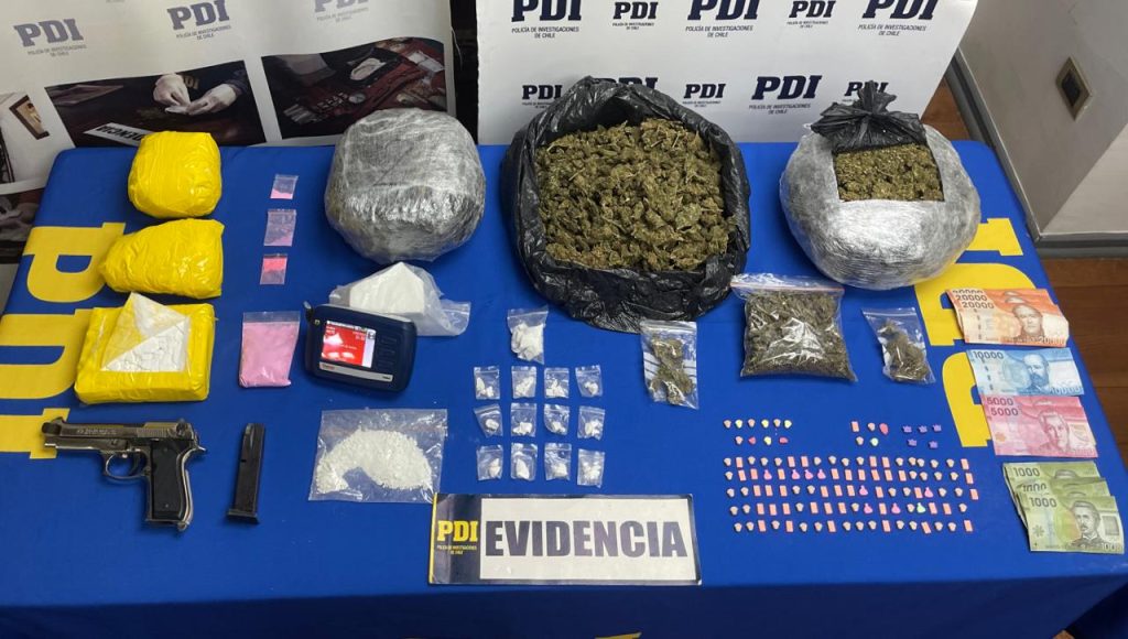 En el allanamiento se decomisaron 6.736 dosis de clorhidrato de cocaína, 2.865 dosis de cannabis sativa, 115 comprimidos de MDMA y 51 gramos de Ketamina. Además, en el lugar se incautaron una pistola calibre 9mm y otros elementos propios del delito.