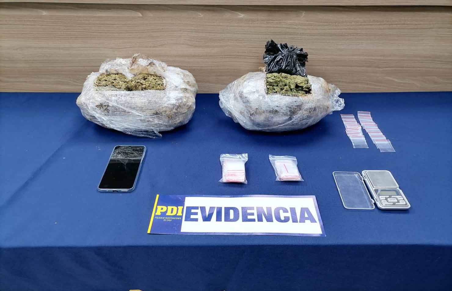 PDI Temuco incauta más de dos kilos de cannabis sativa transportada en una mochila por un pasajero de bus