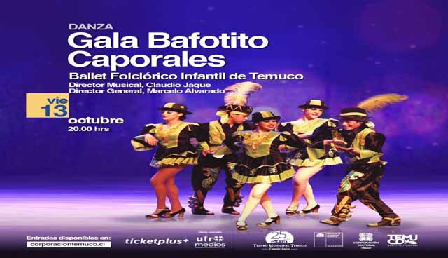 Se trata del estreno especial de «Caporales» con que el Bafotito presenta su gala artística este viernes 13 de octubre a las 20:00 horas en el teatro municipal de Temuco, Camilo Salvo. Espectáculo que mostrará esta danza que llegó a Chile desde Bolivia debido a la inmigración boliviana en el norte del país. De origen afro-boliviano, representa una parte importante de la cultura del norte de Chile y tiene sus raíces en la dolorosa historia de los esclavos negros en América. La figura del «Caporal» era el encargado de supervisar a los esclavos negros en Bolivia durante la época colonial. El baile de los «Caporales» se originó a partir de una representación de este personaje en la danza conocida como Saya. Este baile estilizado no solo rinde tributo a los mulatos que desempeñaban el papel de capataces represores, sino que también sumerge a los espectadores en la historia de los esclavos negros en los valles subtropicales de los Yungas.