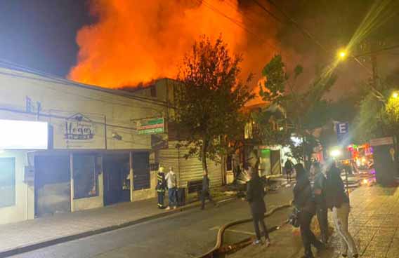 De acuerdo con los antecedentes preliminares de Bomberos, el fuego se propagó rápidamente por el material combustible de los locales y generó una gran columna de humo que se podía ver desde varios puntos de la ciudad.
