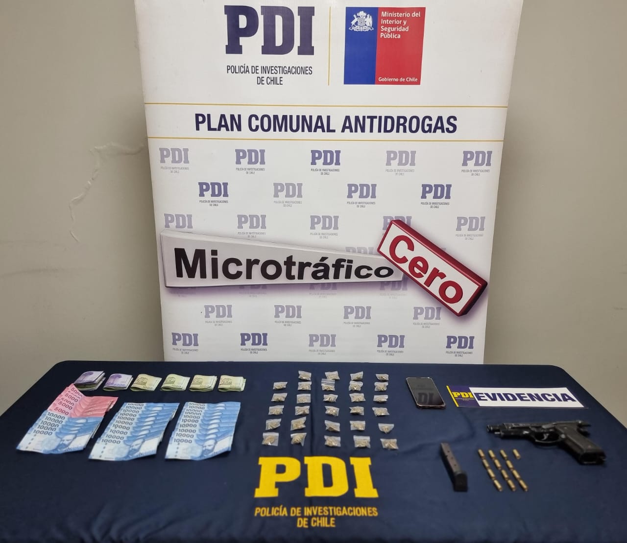 Detectives del equipo MT-0 de la Brigada de Investigación Criminal (Bicrim) Villarrica, detuvieron a un adolescente, de 17 años, estudiante de enseñanza media, que fue sorprendido por sus padres portando dosis de cannabis sativa y una pistola a fogueo.