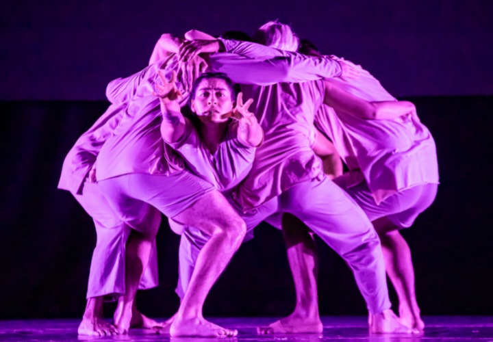 Luego vino la puesta en escena, que a través de la expresión corporal y con apoyo audiovisual, lograron abarcar temas como lo panóptico, la enajenación a través de las redes sociales, el libre albedrío o la alegoría de la caverna.