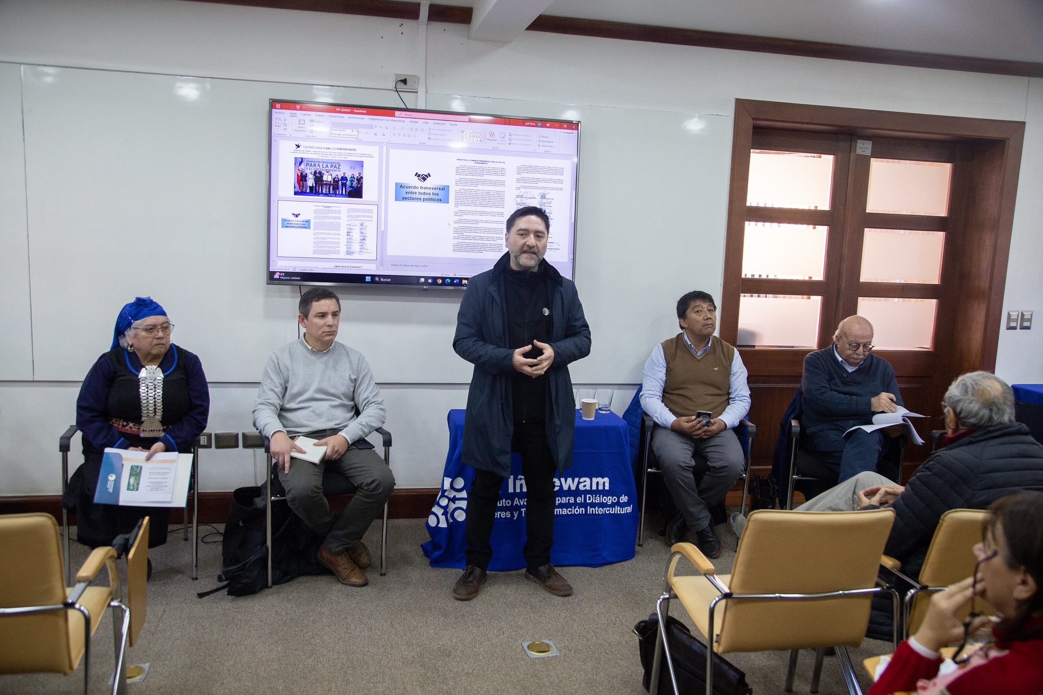 El conversatorio denominado «A un año de la instalación de la Comisión de la Paz y el Entendimiento» contó con un nutrido panel de profesionales integrado por la histórica dirigente mapuche y colaboradora del Instituto Ta Iñ Pewan, Isolde Reuque; el ex alcalde de Tirúa y actual comisionado para la Paz y el Entendimiento, Adolfo Millabur; el abogado y Director Ejecutivo de la Unión de Partidos Latinoamericanos, Nicolás Figari y el destacado jurista y académico de la UCT, Eduardo Castillo.