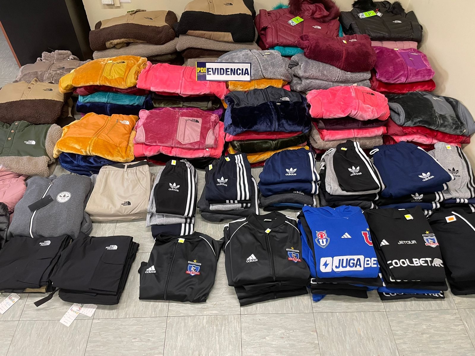 En la comuna de Temuco se confiscaron productos de la marca “Naruto” los que eran comercializados en una céntrica galería del centro de esta ciudad, en tanto en Pitrufquén vestimentas de las marcas “Adidas” y “The Northface” avaluadas en un total de 2 millones de pesos.