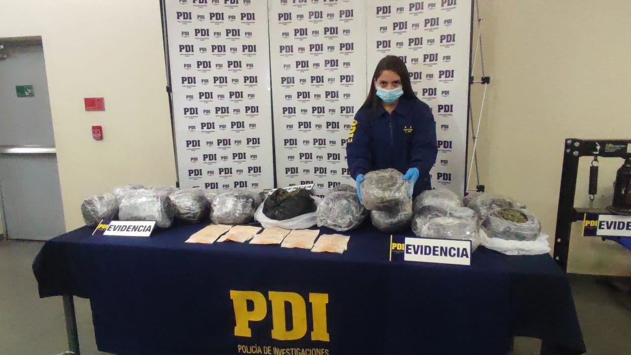 El operativo dejó cuatro detenidos, tres chilenos y una ciudadana argentina, más de 33 kilos de cannabis sativa y vehículos de alta gama.