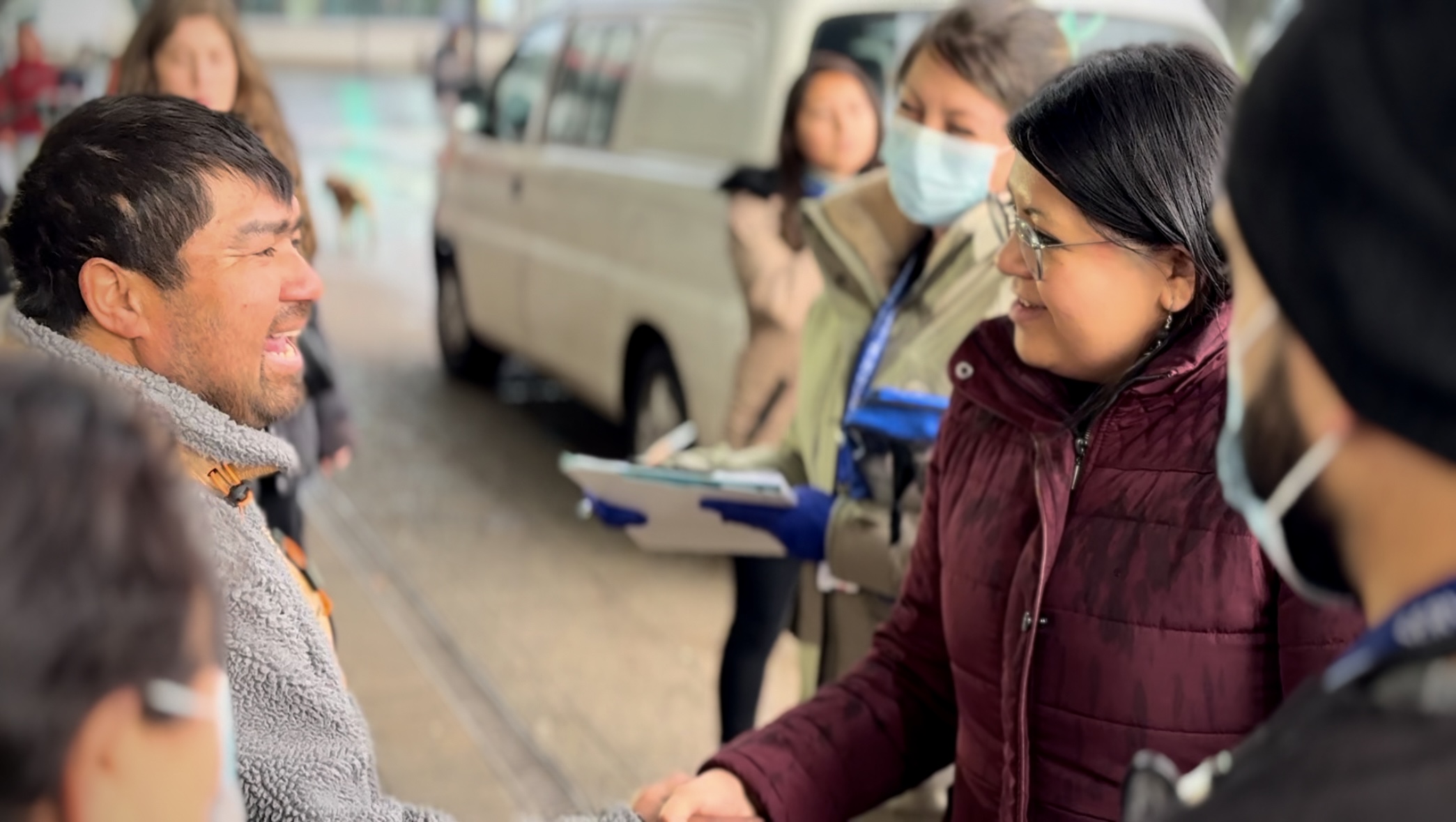 “Hoy día estamos visitando los puntos calle junto a los equipos profesionales que están constantemente desplegados en la comuna, por un lado, entregando alimentación y abrigo, pero también, entregando asistencia médica, verificando que las personas se encuentren bien y, cuando se estime necesario, poder ser trasladados a los recintos de salud correspondientes para que cuenten con atención oportuna, cautelando el derecho a una salud digna como tiene cualquier persona”, dijo la seremi Huillipan.