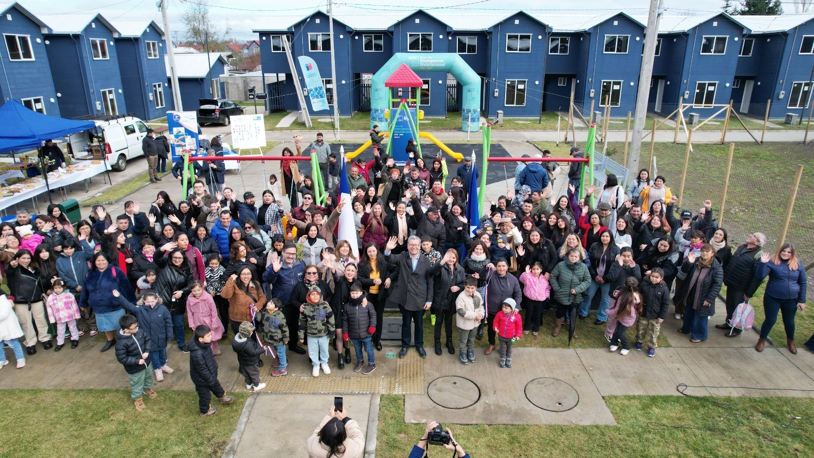 Con cueca, mucha emotividad y agradecimientos a todos quienes hicieron posible la construcción del nuevo conjunto habitacional conformado por viviendas que van desde 56,61m2 a 57,75m2, se desarrolló la ceremonia encabezada por el director de Serviu, José Luis Sepúlveda en conjunto con el Alcalde de Temuco, Roberto Neira, quienes destacaron el avance en materia habitacional que ha tenido la comuna de Temuco y que forma parte del Plan de Emergencia Habitacional, cuya inversión en este proyecto alcanza los $3.447 millones de pesos.