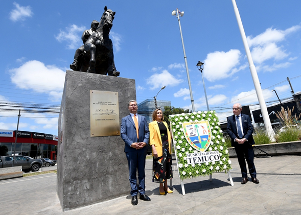 En el marco de la conmemoración del 40º aniversario del Tratado de Paz y Amistad entre Chile y Argentina, y como un símbolo de fraternidad entre ambos países, este martes se realizó la entrega oficial del monumento a José de San Martín, donado por la Universidad Autónoma de Chile a la comunidad de Temuco.