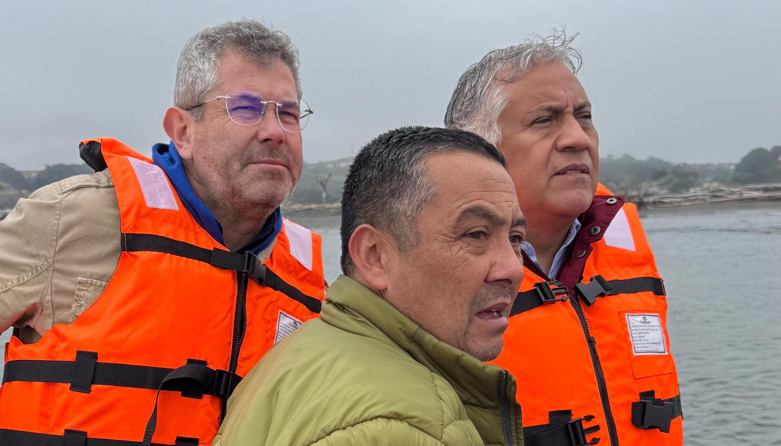 Las autoridades navegaron por el río Imperial, siendo testigos de las dificultades que enfrentan los pescadores artesanales de Saavedra para ingresar al mar de manera segura.