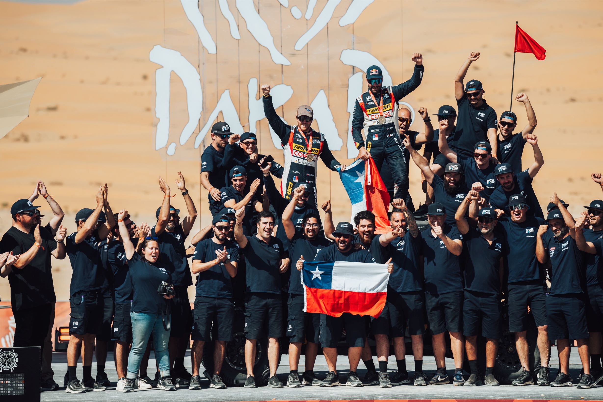 “Estamos muy contentos. Hemos terminado la versión 2025 con un Dakar muy, muy duro que partimos con una semana muy mala. Pero lo sacamos adelante junto a Juan Pablo Latrach en meta. Nuevamente con un podio para Chile. Nos quedamos con la segunda posición. Agradecerles a todos por el cariño que nos han entregado todos los días, los  mensajes, las buenas energías, a todos los auspiciadores, a los fans y muy especialmente a mi familia. Abrazo grande, los quiero mucho… ¡Y viva Chile, mierda!”, expresó muy feliz Francisco Chaleco López luego de recibir el trofeo de subcampeón que simboliza el tuareg.