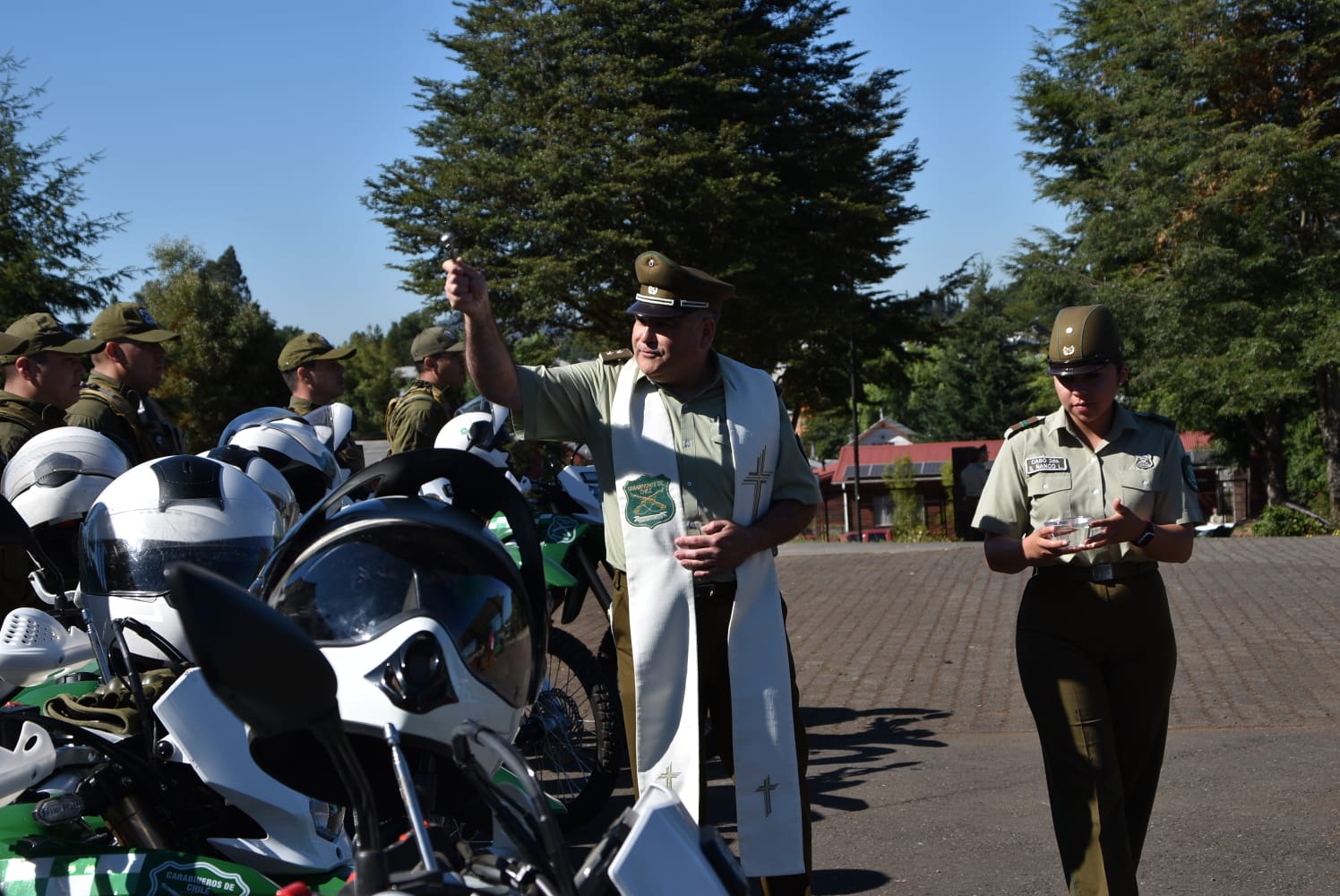 En Padre Las Casas, el delegado presidencial regional, Eduardo Abdala; el jefe (s) de Zona Carabineros Araucanía, general Cristian Mansilla; la jefa de la Región Policial de PDI, prefecta inspectora Catalina Barría; junto al alcalde Mario González y diritentes sociales de la comuna, lideraron la entrega de 25 nuevas motocicletas al servicio de la Zona Araucanía de Carabineros.
