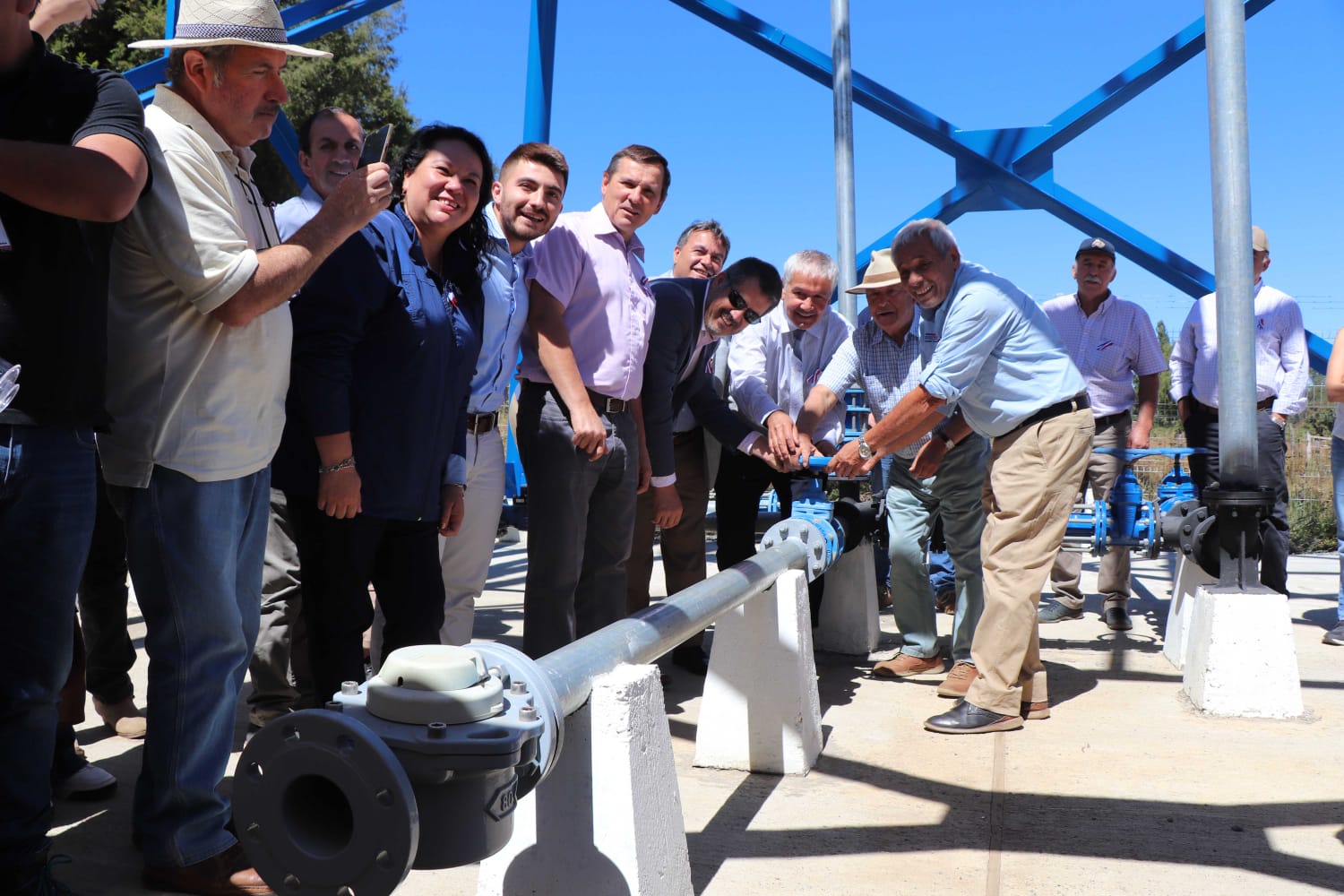Autoridades de Gobierno encabezadas por el Delegado Provincial de Malleco, Leopoldo Rosales; el Seremi de Obras Públicas, Patricio Poza; el alcalde de Curacautín, Hugo Vidal; la Directora de Obras Hidráulicas, Vivianne Fernández; dirigentes, parlamentarios y vecinos beneficiarios, inauguraron estas nuevas instalaciones de agua potable.