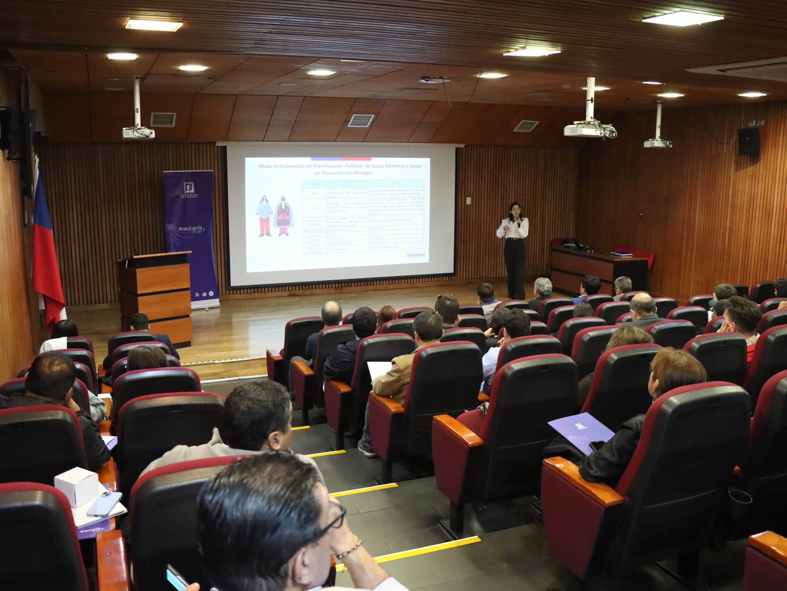 La jornada contó con la presentación “Modelo de planificación Regional” a cargo de Geraldine Espinoza, jefa del departamento de fortalecimiento regional de SUBDERE y la exposición “Hacia un sistema de planificación en la Región de La Araucanía” dirigida por Marco Rosas, coordinador de División de Planificación y Desarrollo Regional de Gore Araucanía.