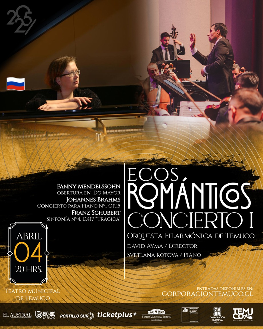 Las entradas para este imperdible concierto ya están disponibles en www.corporaciontemuco.cl o www.ticketplus.cl. Una oportunidad única para disfrutar del inicio de la Temporada 2025 con lo mejor de la época romántica en el Teatro Municipal de Temuco.
