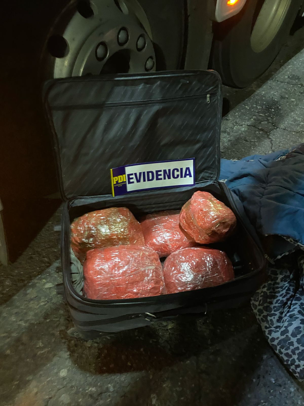 Los individuos fueron interceptados por efectivos policiales de la PDI, a bordo de un bus interprovincial con dirección a Valdivia, transportando al interior de sus equipajes 8 kilos 700 gramos de cannabis sativa y 33,20 gramos de ketamina, todo ello fue detectado por los ejemplares caninos de la Brigada Antinarcóticos y Crimen Organizado Angol y Temuco.