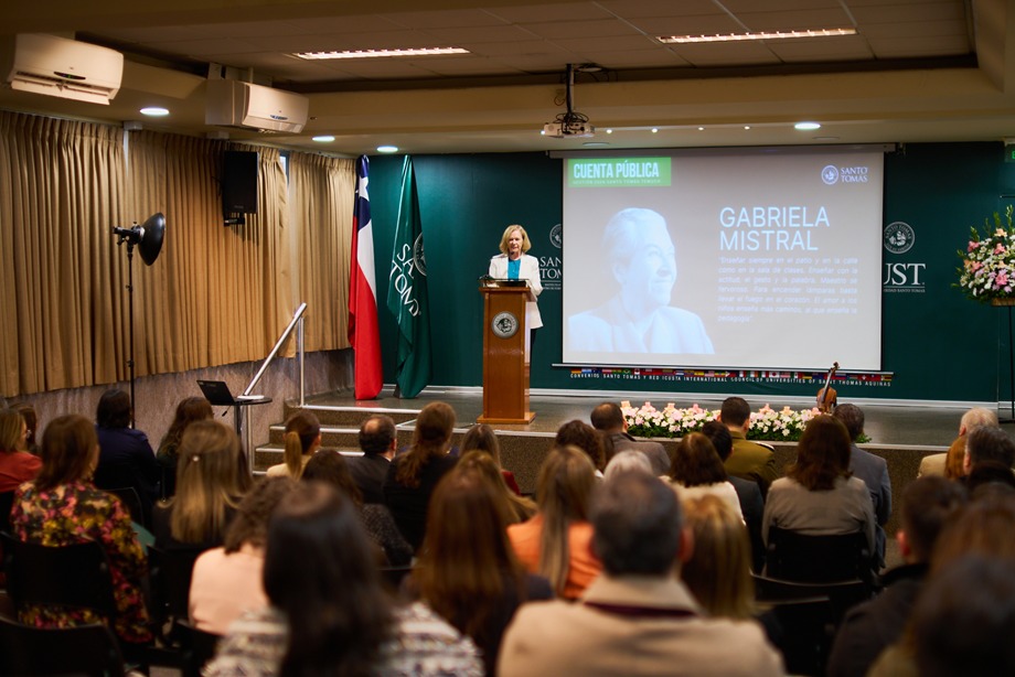 Entre los temas que la rectora abordó en la Cuenta Pública destacó la presencia, tanto nacional como regional de Santo Tomás. En la Región de La Araucanía, esta presencia se materializa a través de la sede Santo Tomás Temuco, donde la comunidad estudiantil accede a una experiencia integral de aprendizaje en espacios como las sedes Rodríguez y Pedro de Valdivia, Centro Demostrativo de Recursos Naturales, Centro de Atención Psicológica (CAPS), Clínica Jurídica, el Hospital Clínico Veterinario y Casa de la Familia en Padre Las Casas.