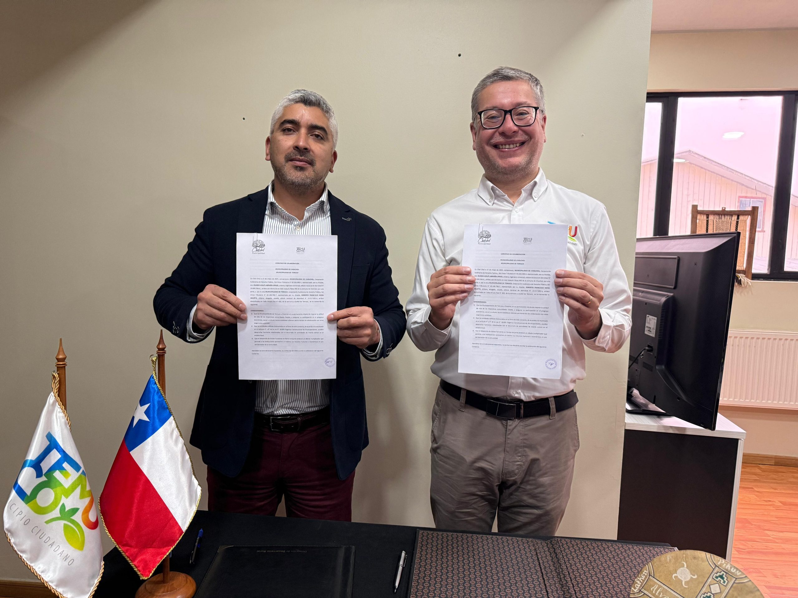 Con el fin de fortalecer la alianza con las comunas vecinas, y en pos de brindar mejores servicios a la comunidad, el alcalde de Cholchol, Álvaro Labraña y el alcalde de Temuco, Roberto Neira, han oficializado un convenio estratégico que permite facilidades entre ambos municipios, las cuales contribuyen a entregar soluciones eficientes a los vecinos y vecinas de la zona.