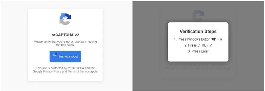 Cuando aparece el cuadro CAPTCHA, puede parecer perfectamente legítimo. Sin embargo, lo que pide debería hacer saltar las alarmas. En lugar de presentarle las típicas tareas CAPTCHA, como identificar imágenes similares o escribir un texto distorsionado, puede solicitar que se ejecuten comandos específicos, como: