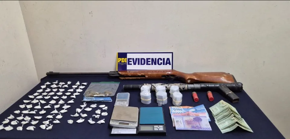 La PDI de Temuco detuvo a tres personas en el sector Pedro de Valdivia por microtráfico de drogas. Se incautaron armas, drogas y elementos de dosificación en un operativo coordinado con la Fiscalía Local.